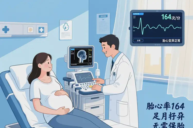 孕晚期(9个多月,即孕37周及以上)胎心率164次/分属于临界偏高但仍在正常范围上限附近的数值。此时胎儿已足月,保胎并非首要目标,重点应转为评估胎儿安危与分娩时机。若胎心持续>160次/分并伴随胎心变异减少、减速、宫缩异常或母体疾病(如妊娠期高血压、发热、甲状腺功能亢进等),需紧急评估;若为短暂升高且无其他异常,多属生理性反应,密切监测即可,无需常规保胎。