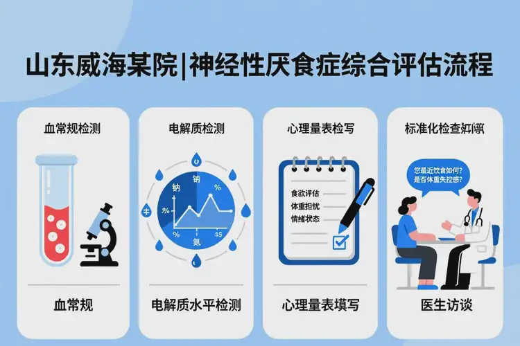 神经性厌食症属于进食障碍,常需精神科或临床心理科介入。威海市目前缺乏专门的进食障碍诊疗中心,心理评估多由综合医院神经内科或精神卫生门诊承担,相关量表测评及访谈费用因医院而异,通常单次在50–200元之间。