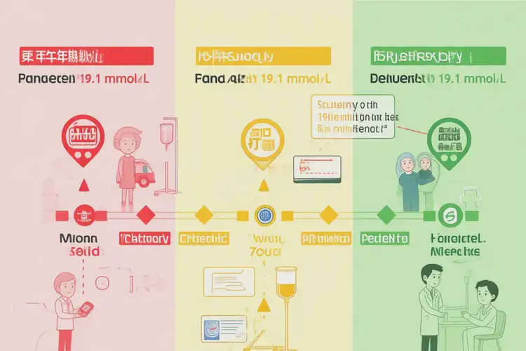 当血糖持续高于13.9 mmol/L且胰岛素严重缺乏时,身体开始分解脂肪供能,产生大量酮体。19.1 mmol/L的血糖水平,若伴随口渴、多尿、乏力、恶心、呼气有烂苹果味、意识模糊等症状,极可能已进入糖尿病酮症酸中毒前驱或早期阶段。这是一种可致命的急症,需立即静脉补液与胰岛素治疗。慢性损害:长期高血糖的累积伤害