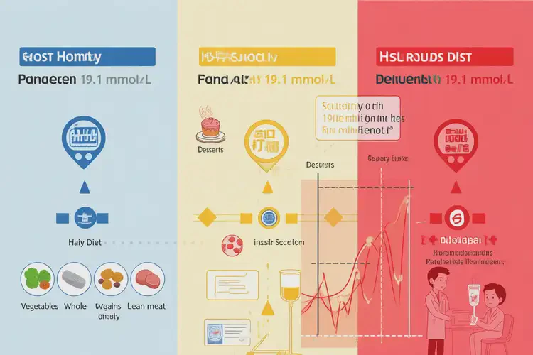 医生将通过糖化血红蛋白(HbA1c)、C肽水平、自身抗体检测等判断是2型糖尿病(更年期最常见)还是1型糖尿病(较少见但可能)。19.1 mmol/L的数值,无论何种类型,均需胰岛素治疗作为初始方案。个体化治疗方案